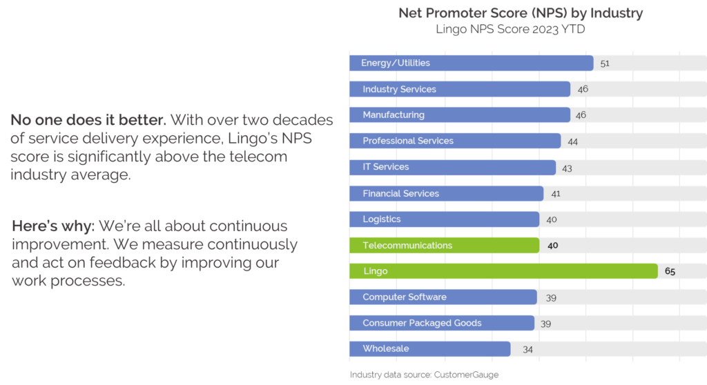Lingo has earned industry-leading customer satisfaction scores from decades of service to businesses.